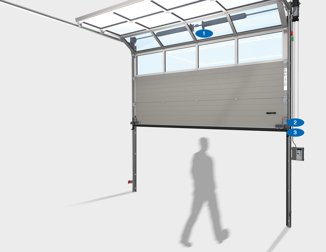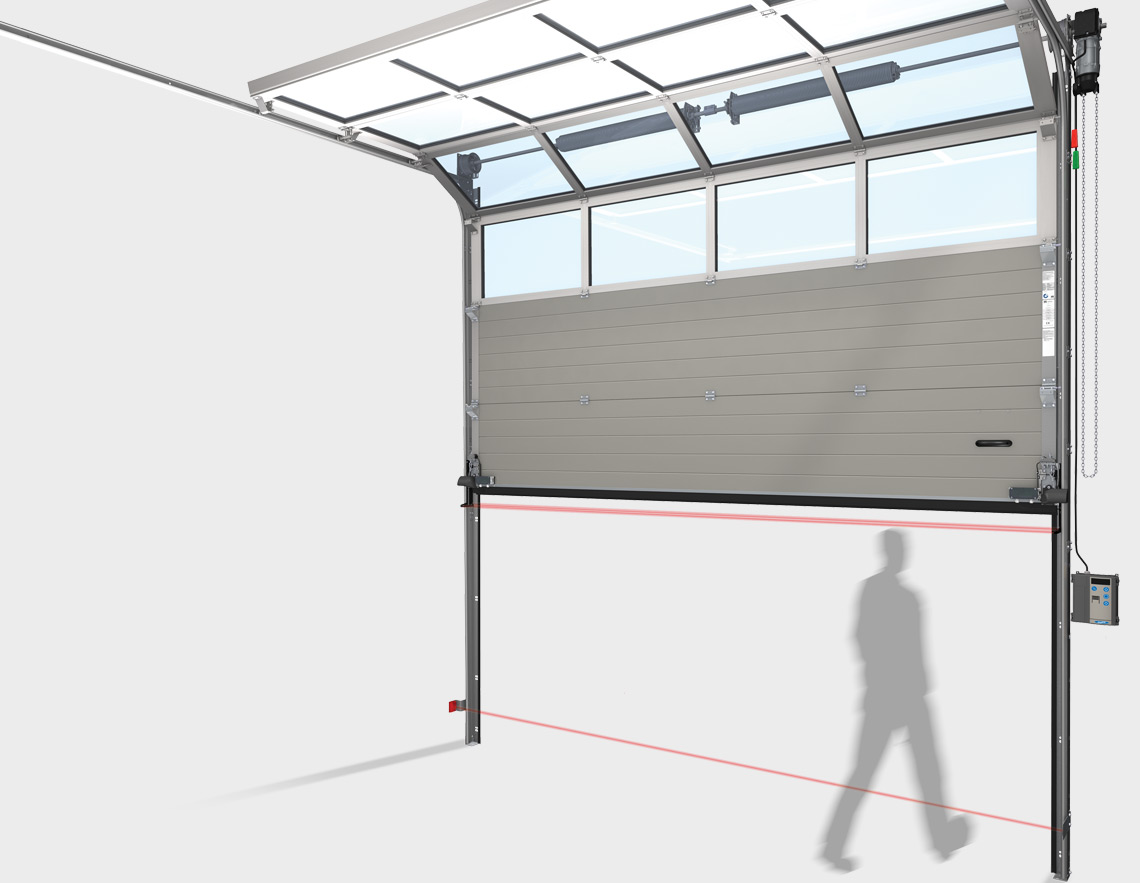 La sécurité est importante lors de l’utilisation de portes sectionnelles mobiles verticales, souvent lourdes. C’est pourquoi Novoferm propose des systèmes de sécurité mécaniques et électriques afin d’éviter que la porte ne se referme sur des personnes, engins ou autres obstacles, ce qui pourrait occasionner des dommages corporels (au personnel) ou matériels (aux portes et / ou aux marchandises). Il est toutefois souvent inutile, voire néfaste, de surprotéger une porte sectionnelle.