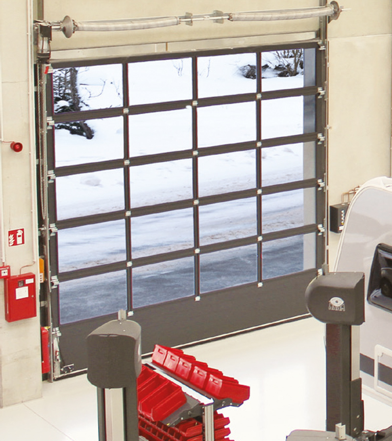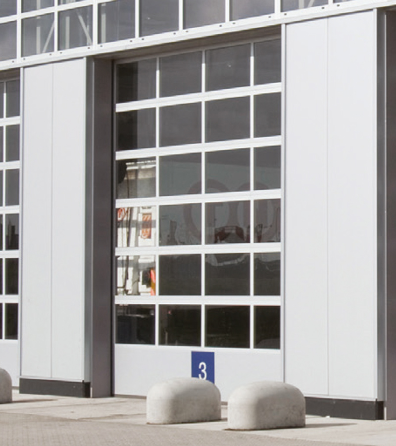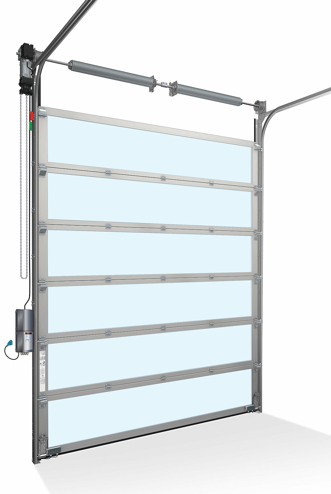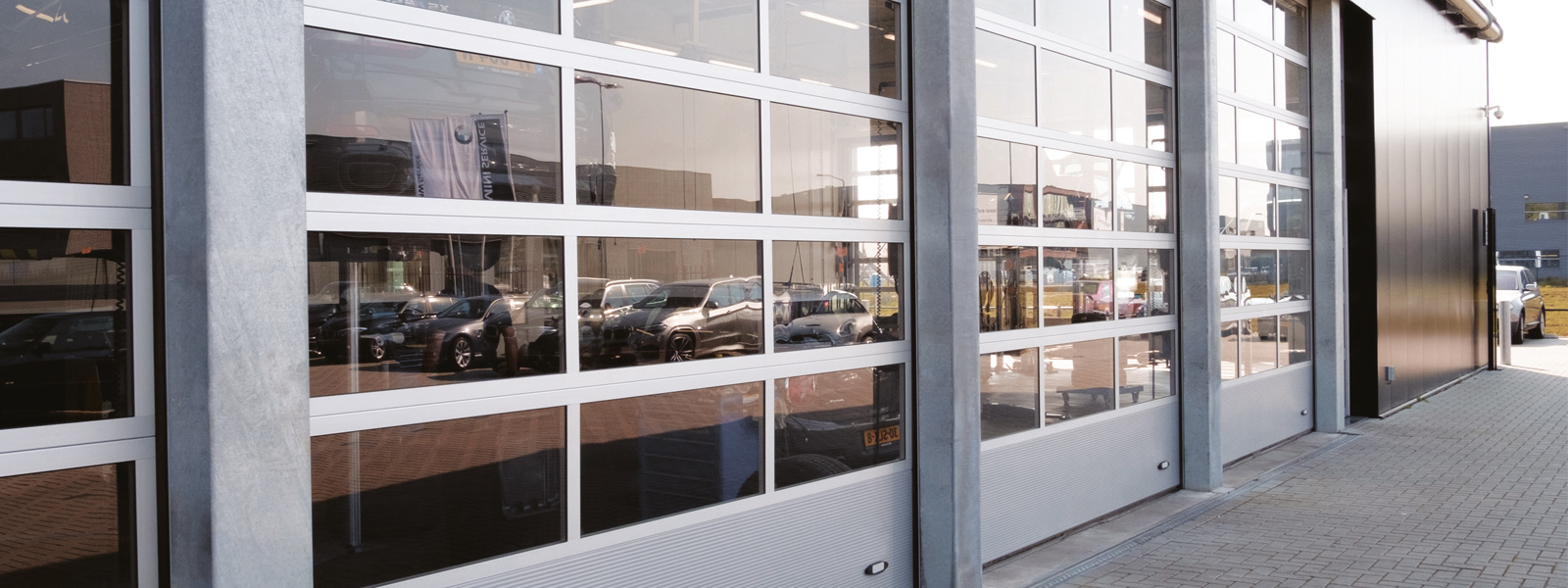 Les portes sectionnelles NOVOLUX 40 mm sont conçues pour les environnements commerciaux où la lumière et la visibilité sont cruciales. Le vantail de la porte est composé de plusieurs sections transparentes. Grâce à l'utilisation de profilés d'aluminium spécialement dimensionnés, les cadres peuvent être réalisés avec une large gamme de vitrages et de panneaux. Combinez les cadres avec des panneaux à cassettes en aluminium et choisissez entre des panneaux translucides, colorés, thermo-isolants ou perméables à l'air. Pratiquement tout est possible.