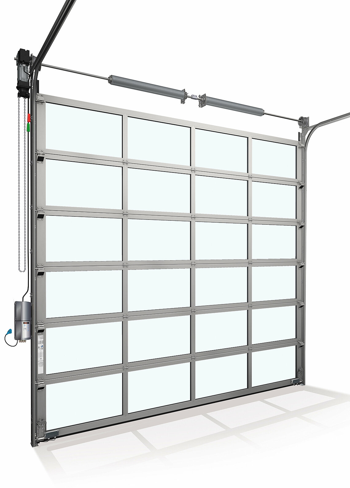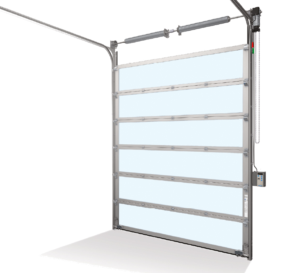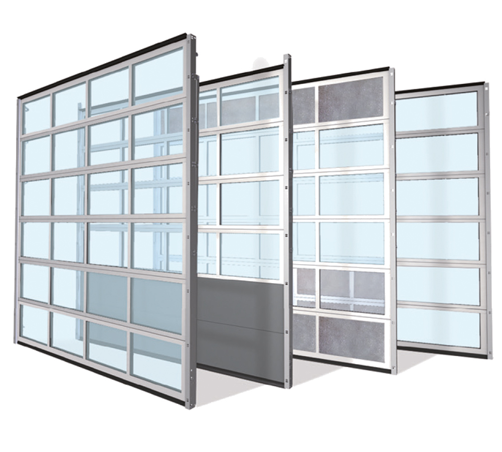 Porte sectionnelle isolée entièrement vitrée (épaisseur du panneau 40 mm).