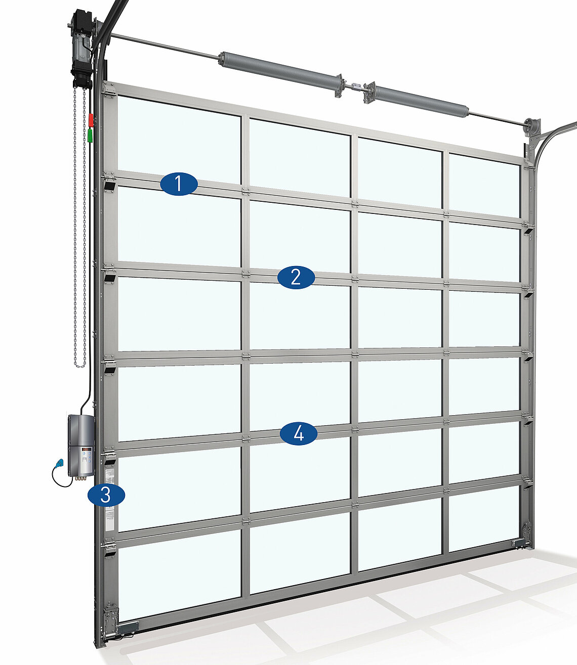 Novolux 40 mm sectionaaldeuren kunnen naar wens worden voorzien van een breed scala aan kunststof ramen in tal van kwaliteiten, isolatiewaardes, kleuren en structuren. Kies voor gekleurd glas of kanaalplaten, speel met vlakverdelingen en combineer Thermo panelen met de Novolux secties voor een optimaal effect. Vooral als er in uw pand gewerkt wordt en er veel licht nodig is, maar ook de uitstraling belangrijk is, dan biedt de Novolux 40 deur volop ontwerp- en toepassingsmogelijkheden.