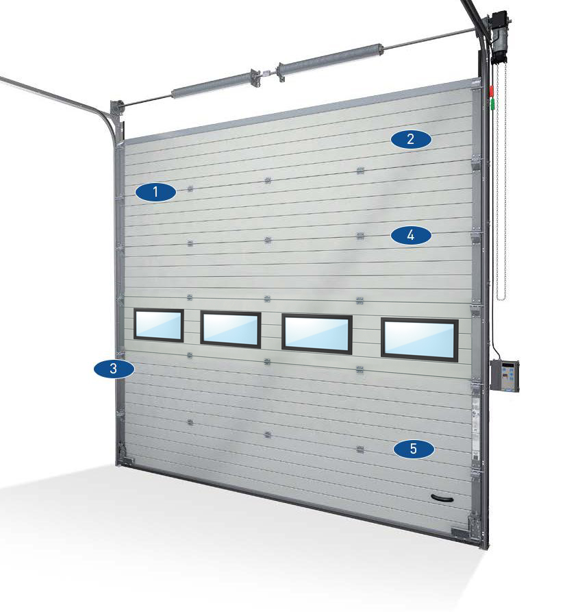 De Thermo 80 mm sectionaaldeur is de best isolerende deur van Novoferm. De deur combineert superieure warmte-isolerende en geluiddempende eigenschappen met modern vormgegeven panelen met microprofilering. De deur is altijd perfect te configureren voor uw situatie. Kies de gewenste afmetingen en venstervarianten en maak een keuze uit de vele opties, zoals een RAL-kleur, loopdeur of afstandsbediening.