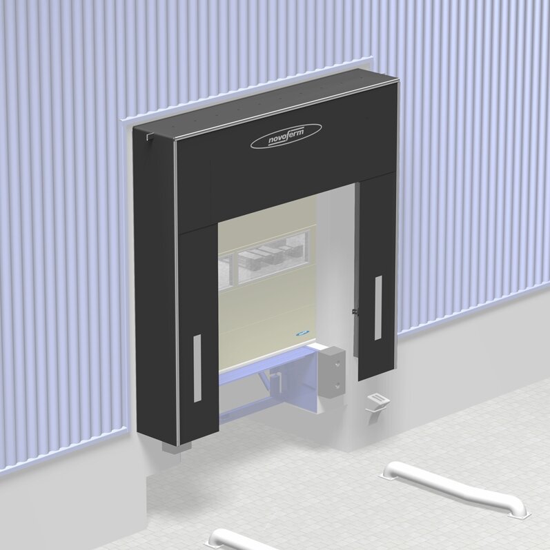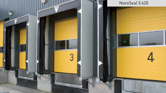 Novoferm-dockshelters met terugverende voorbouw beschermen tegen tocht, regen en wind. Ze vormen een perfecte afdichting tussen vrachtwagen en gebouw en verhinderen energieverlies en mogelijke beschadigingen van het vrachtgoed. De inwendige regenafvoer leidt het regenwater gericht naar de zijkant af.