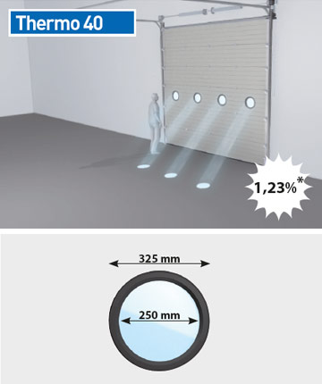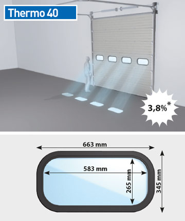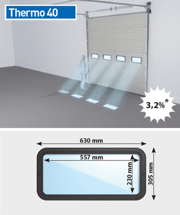 De sectionaalpoort Thermo 40 mm is de meest verkochte industriële poort van Novoferm. De poort combineert uitstekende warmte- en geluidsisolatie-eigenschappen met panelen in een microprofiel met modern design. De mogelijkheden op het gebied van design en uitrusting zijn grenzeloos, zodat de poort altijd en voor iedere situatie perfect configureerbaar is. Maak uw keuze uit talrijke opties voor licht- en zichtelementen, hoogtes en breedtes en een standaardpalet van 13 RAL-kleuren uit het Novoferm-assortiment.