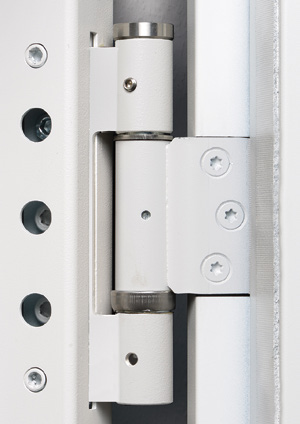 Standaard zijn de deurbladen uitgevoerd met een driedelig gelagerd scharnier en een veerscharnier. Hierdoor zijn de